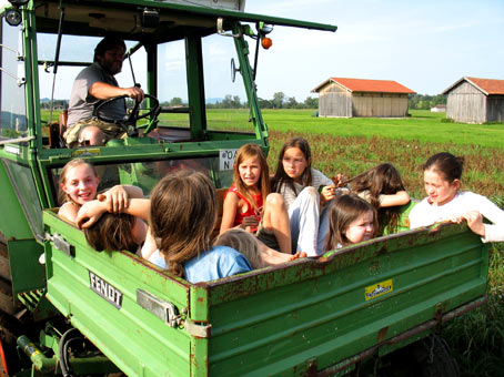 Wir waren mal wieder eine volle Attraktion. Leute, die auf der Straße vorbeifuhren und uns sahen, hielten an und machten Fotos von uns - Wann sieht man sowas schon noch - ein großes Kartoffelfeld voller Menschen in allen Altersgruppen die voller Freude die Kartoffeln ernten oder einen Traktor dessen Hänger mit lauter kleinen Wichteln beladen ist. Es hat einfach einen riesen Spass gemacht und wir freuen uns umso mehr jetzt diese leckeren Erdäpfel essen zu können, hoffentlich bald auch mit Euch!